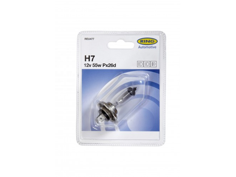 Автолампа RING в пластиковой упаковке (по 1 шт): 12 вольт, мощность 55W, цоколь H7 (PX26D)