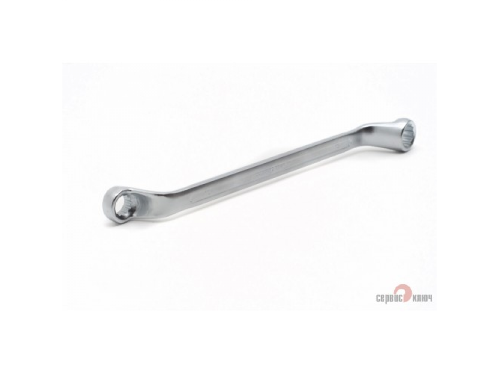 Двусторонний накидной ключ со смещением. Имеет на обоих концах 12-гранные накидные профили. Накидной профиль со смещением предоставляет более широкие возможности при работе в ограниченном пространстве. Изготовлен из высококачественной хромованадиевой (Crv) стали методом холодного штампа, тверность 40-45 HRC.